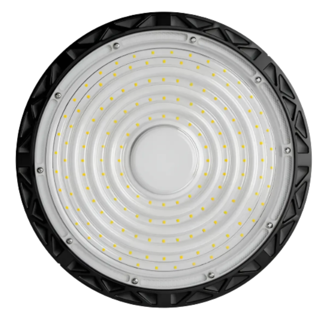 La campana LED Highbay Classic de Macroled es una luminaria de alta potencia diseñada para la iluminación de espacios con techos elevados donde se requiere un nivel de iluminación intenso y uniforme: galpones, depósitos, fábricas, talleres, frigoríficos, supermercados de gran superficie y centros logísticos. Su formato compacto tipo UFO facilita la instalación mediante cáncamo suspendido o brazo de pared (accesorio opcional), y su ángulo de apertura de 90° concentra el flujo sobre el plano de trabajo.
